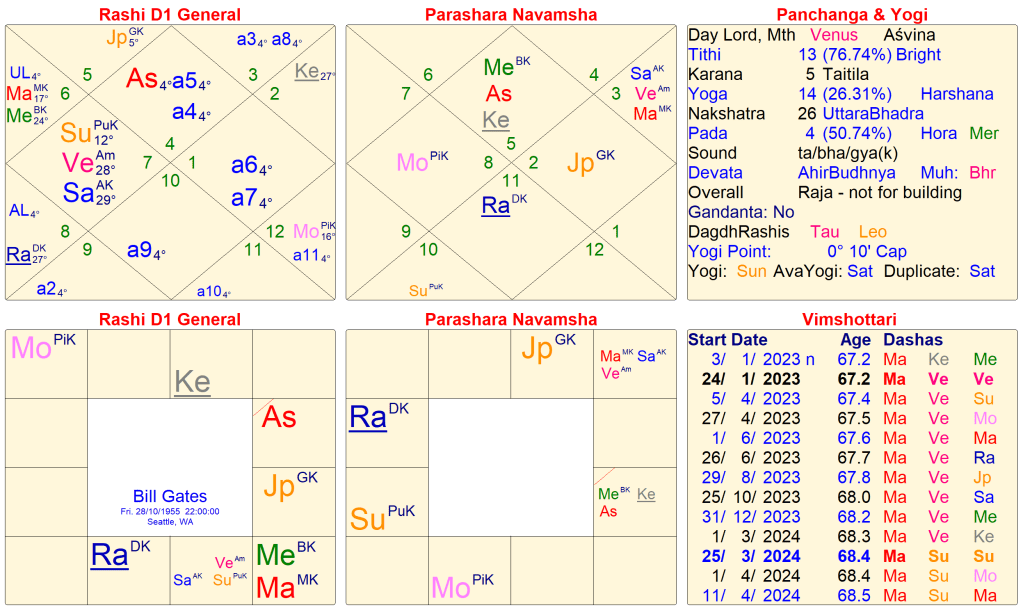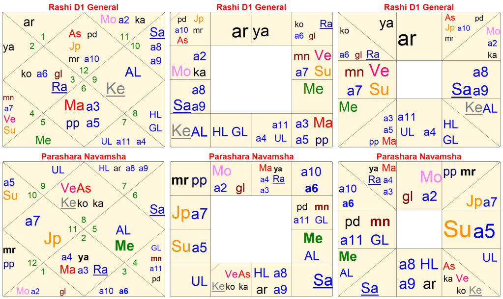 We also see the Navamsa Lagna is the 9th House of Rashi. He is very devoted to his Gurus, Dharma and our Tradition. He has a very strong sense of duty and dharma. This is how Navamsa tells everything. Om Gurave Namah.